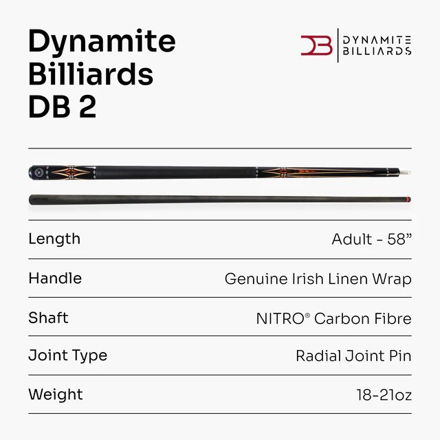 - Black UV coated butt with unique Dynamite Billiards decal design